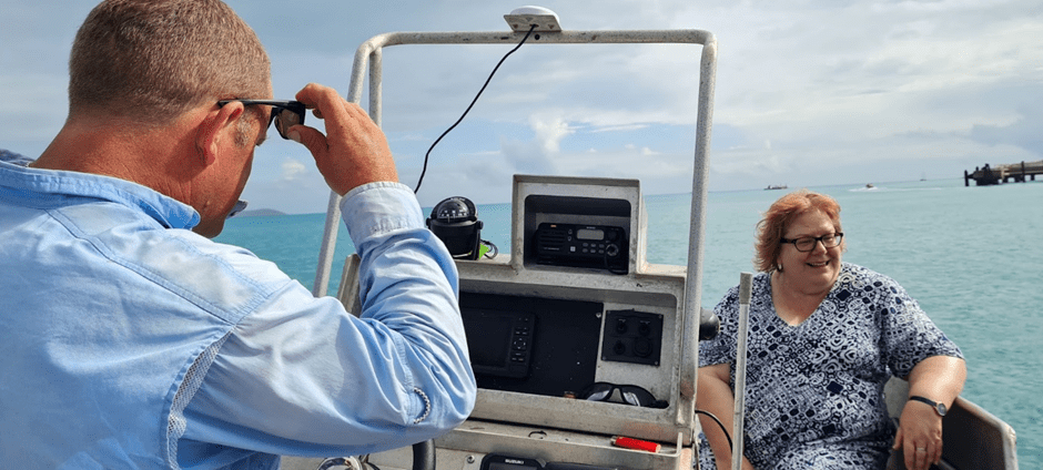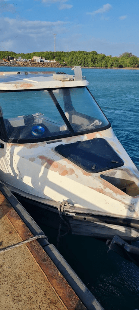 As we headed for the ferry again, we wondered where it was and discovered that on a Sunday Service only runs if you pre-book it. Viv was supposed to speak at church at 10 and the next ferry wasn’t due till 9:30. We met another lady as well that was going to a different church but was caught in the same pickle as us. So Viv prayed for an Angel with a Boat and not like 2 minutes later Duncan walks up to Viv and I, and asks where we are going. We explain our predicament and he offers to take the three of us across to TI. He was going fishing afterwards and later told us he felt good doing a good deed for the day. His boat was nice and fast. He caught a couple of Grand Trevallys he later told us.