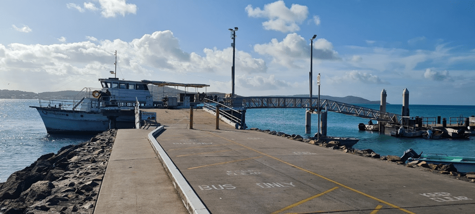 When we arrived to take the ferry across the first day we saw a big white boat called Queenslander.